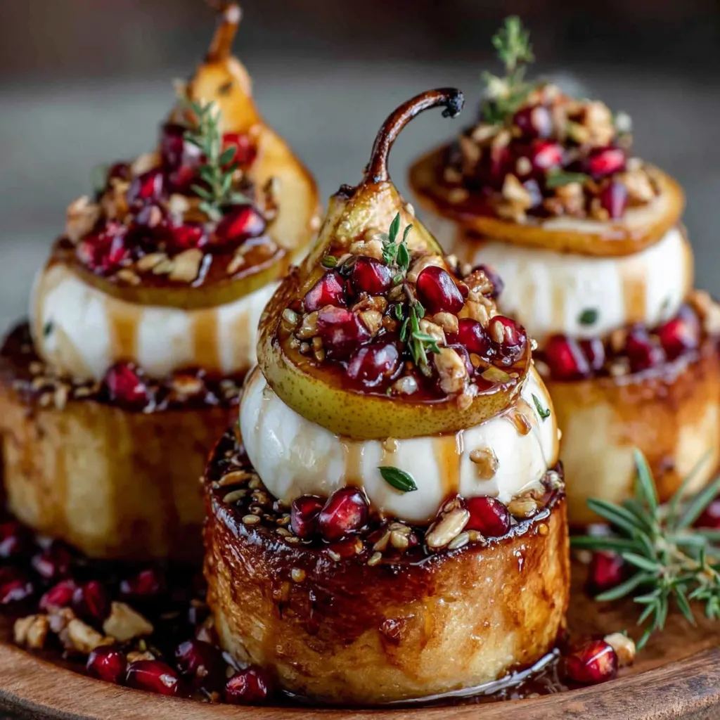 Golden Caramelized Pear & Burrata Towers