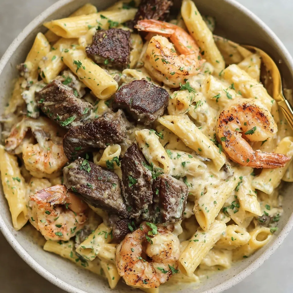 Blackened Steak and Shrimp Alfredo