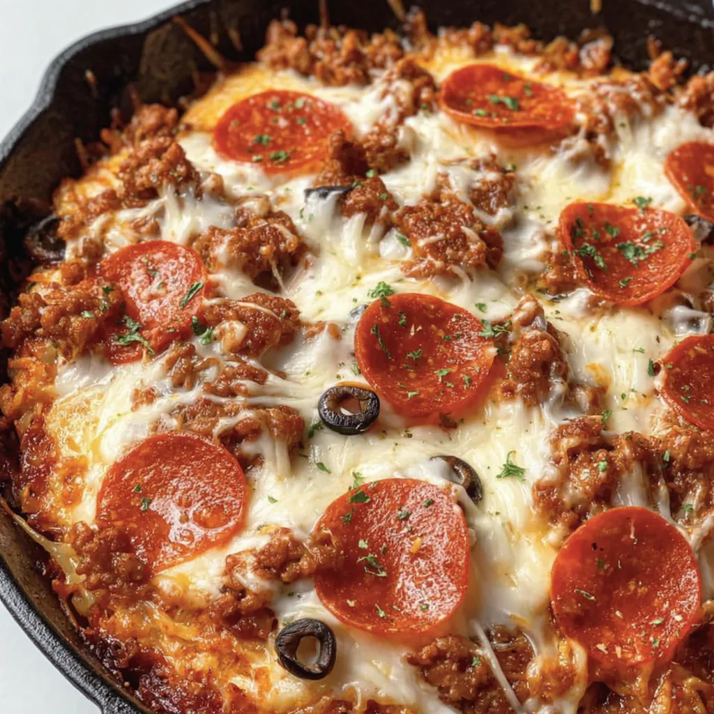 Crustless Pizza (Skillet Sausage & Pepperoni Bake)