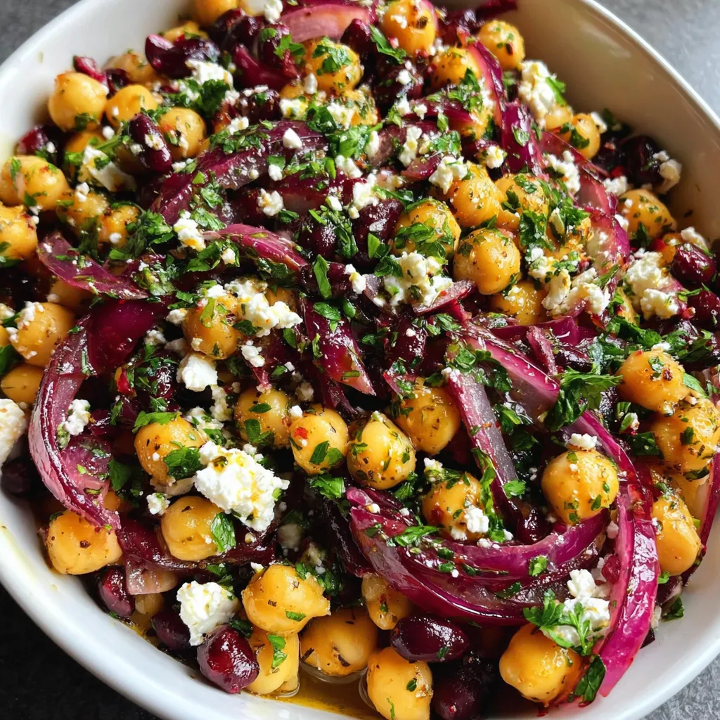 Chickpeas & Black Beans Chilled Salad with Feta and Parsley